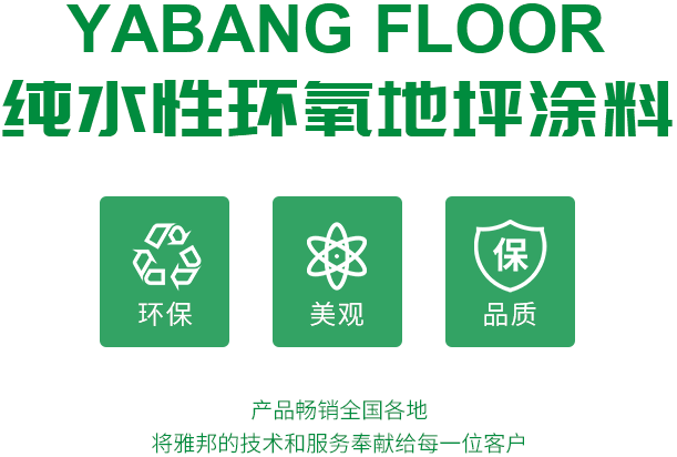 江蘇雅邦環保科技有限公司是水性環氧地坪全系列成品涂料的研發、生產、銷售和施工服務于一體的企業。        公司產品是以第三代非離子原材料和先進技術生產的新型全水性環氧地坪涂料。